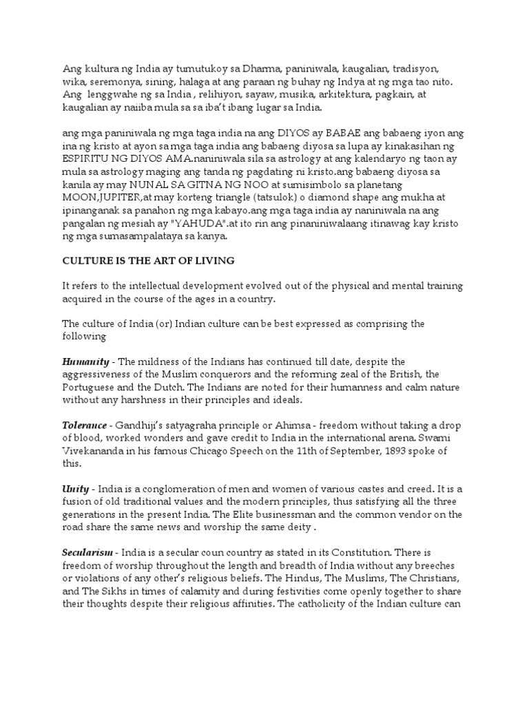 Kultura ng mga muslim tagalog. Anu-ano ang mga relihiyong paniniwala at kultura ng mga Indones. Kultura ng mga taga saudi arabia. Ang mga awit sining kasabihan kagamitan at mga selebrasyon ay ilan rin sa mga bagay-bagay na bumubuo ng tinatawag natin na kultura.